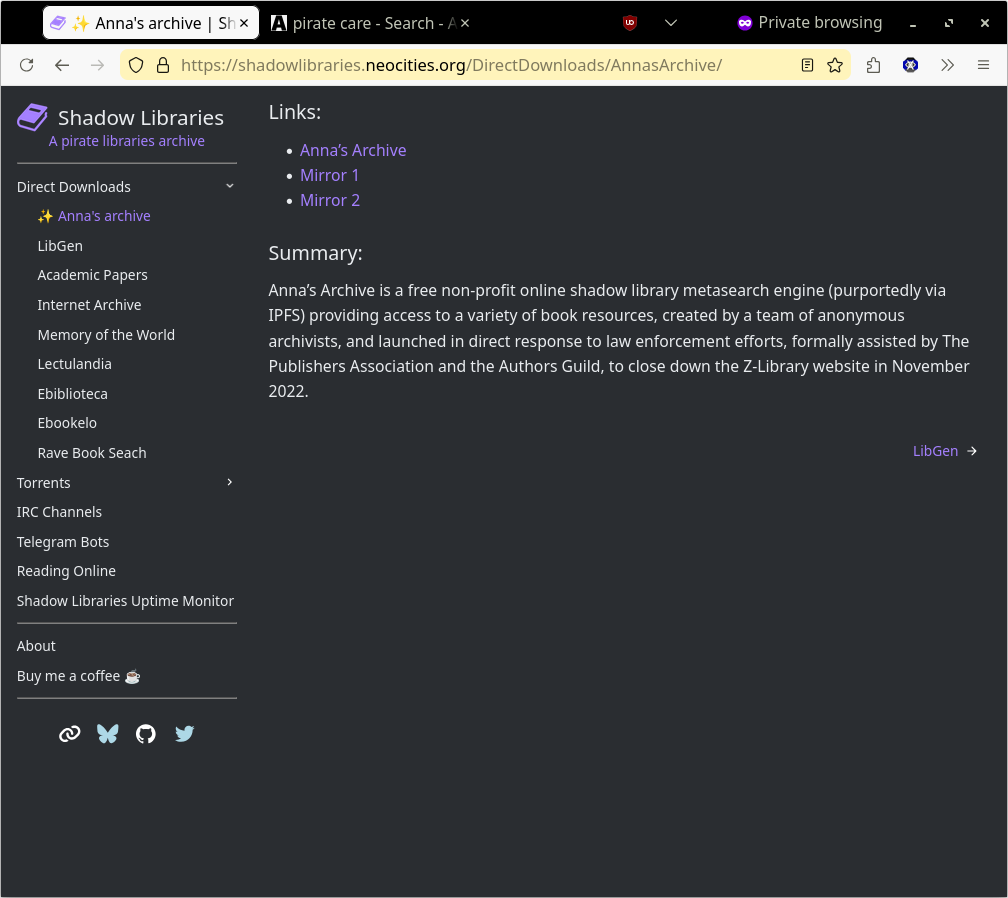 - Zlibrary, Anna's Archive + WorldCat